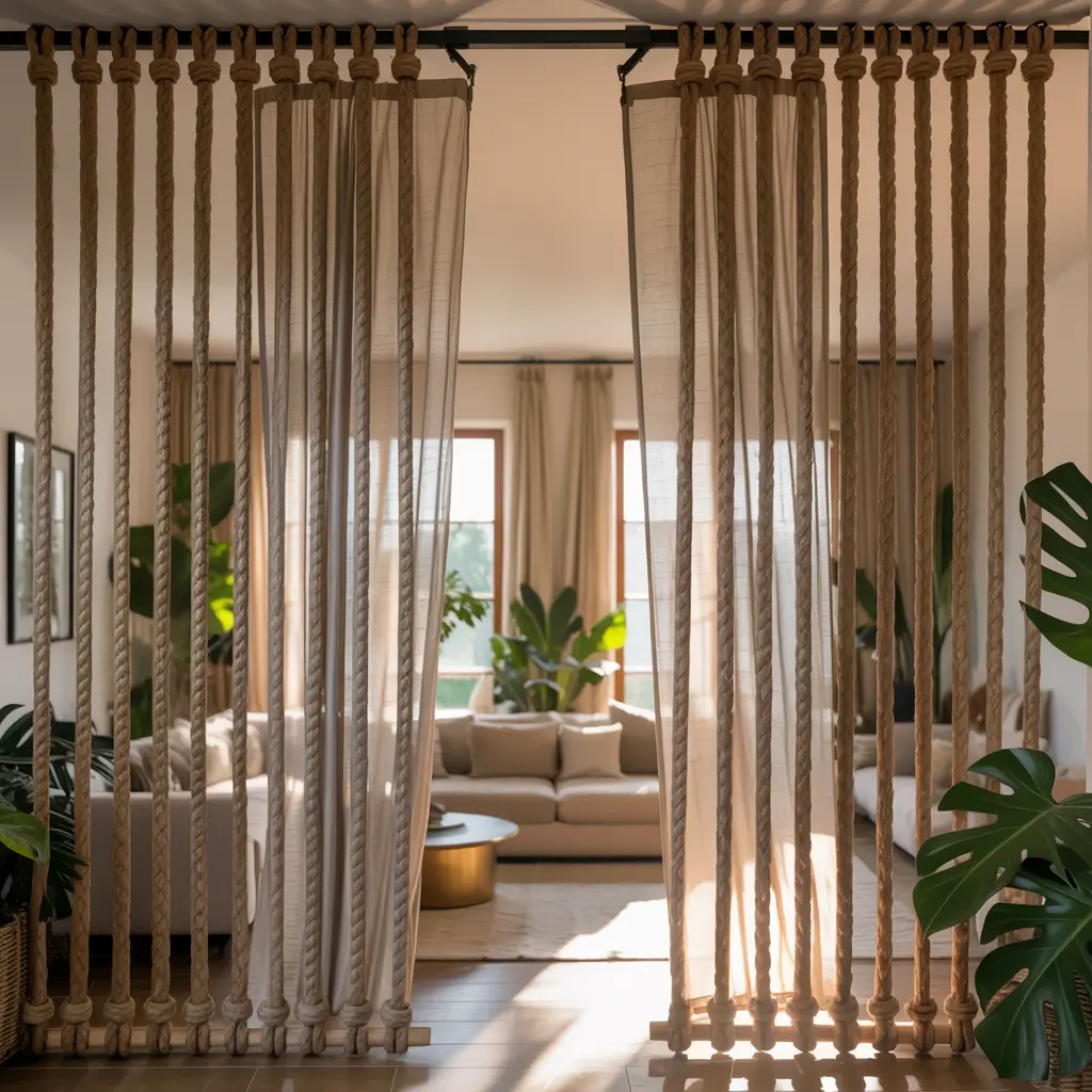 Here’s where things get interesting. Hanging rope dividers bring texture and movement to your space in a way that solid partitions simply can’t match.