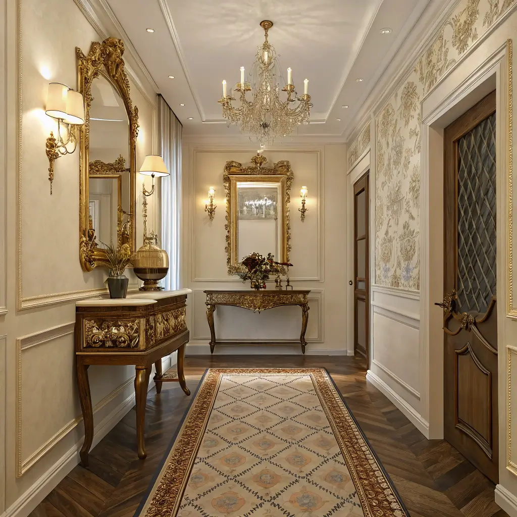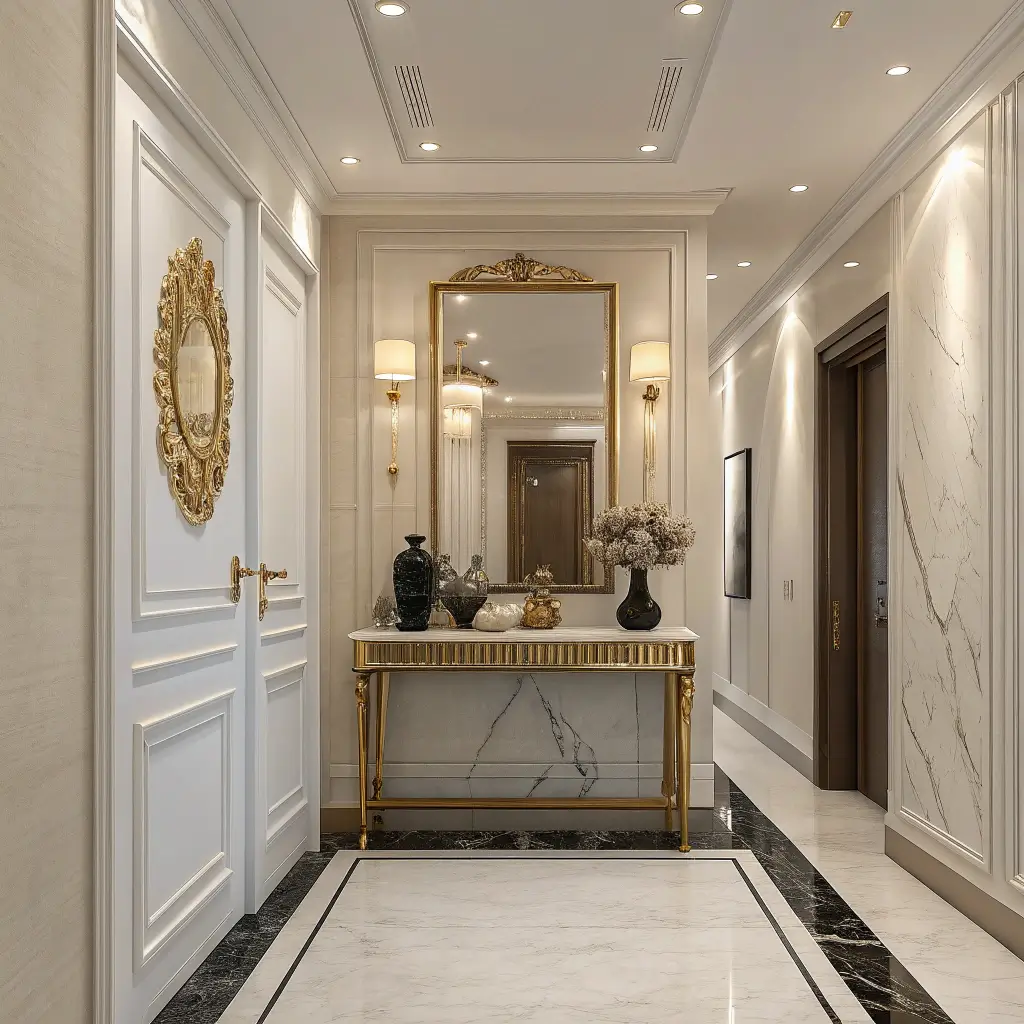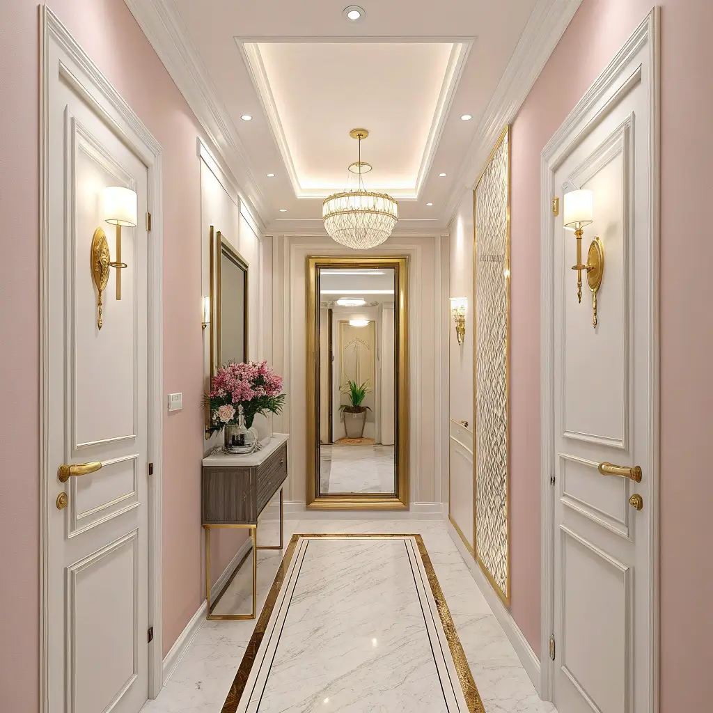 Want to know the oldest trick in the interior design book? Mirrors. But here’s why it actually works: mirrors literally double your visual space and bounce light around like magic. In narrow hallways, they’re basically miracle workers.