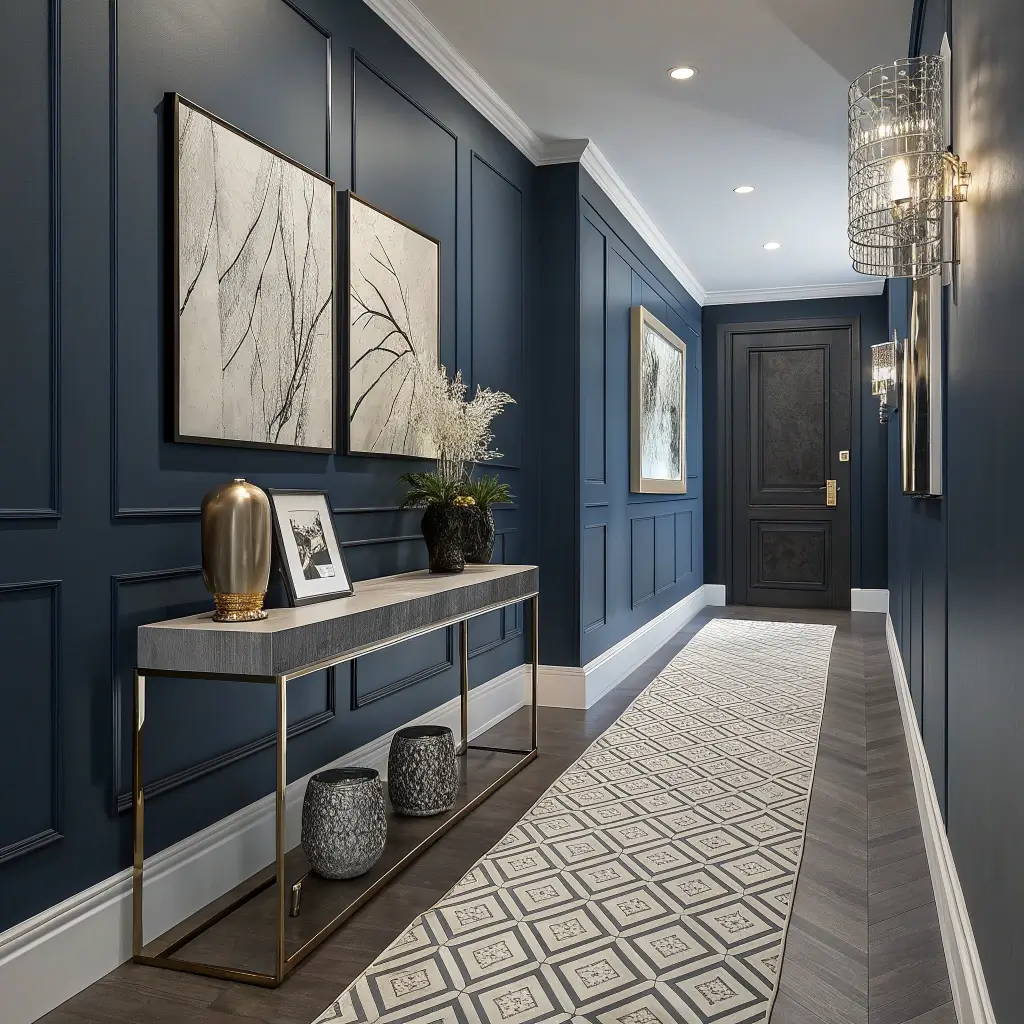 Remember, bold doesn’t mean chaotic. Choose one hero color and build around it with neutrals. Your hallway should energize, not overwhelm.