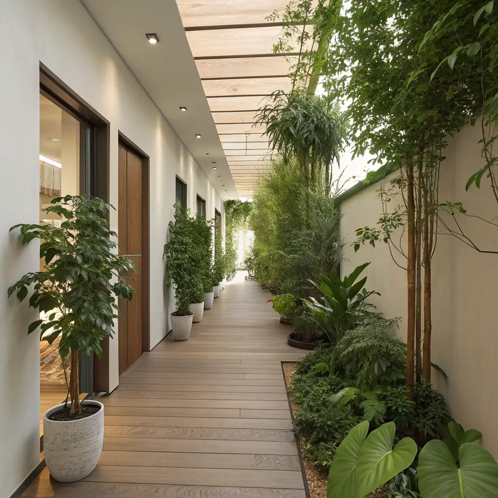 Bringing nature indoors through plants creates life and movement in otherwise static hallways. Plus, who doesn’t feel better surrounded by greenery? It’s like having a mini forest greeting you at home.