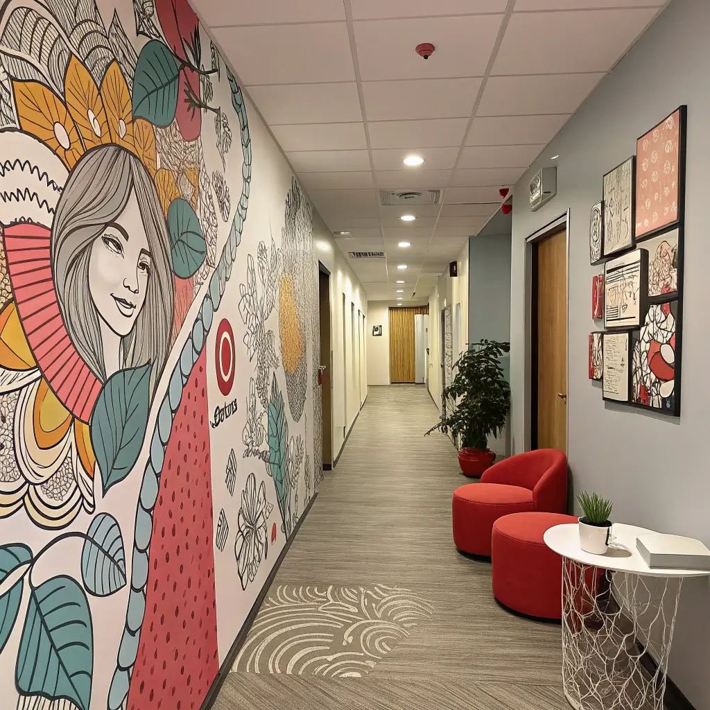 Start small if you’re nervous – even one accent wall with a mural creates major impact. And remember, this is your chance to be bold. Hallways can handle drama!