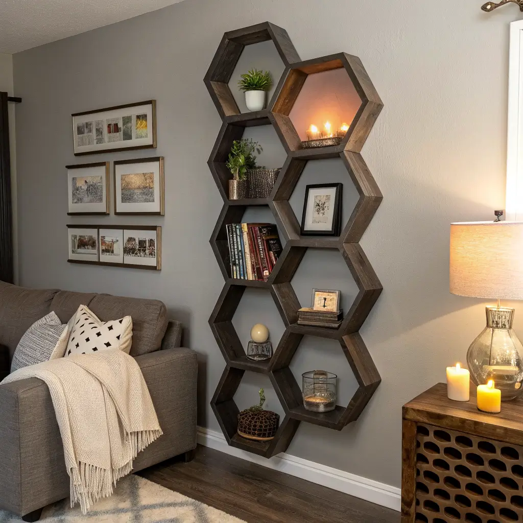 I’m partial to walnut myself – that rich, dark wood makes everything you display look expensive. But pine hexagons? They’re the budget-friendly heroes that still look amazing, especially if you’re going for that Scandinavian vibe.