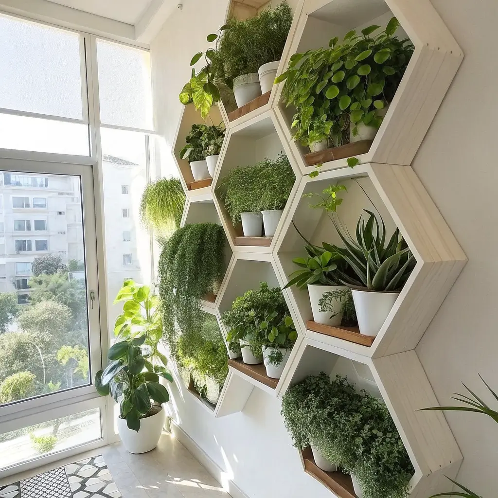 Plant parents, this one’s for you! Hexagon plant walls are basically vertical gardens that make your home look like an urban jungle (in the best way possible). The geometric shapes frame your plants perfectly, turning even the saddest pothos into a work of art.