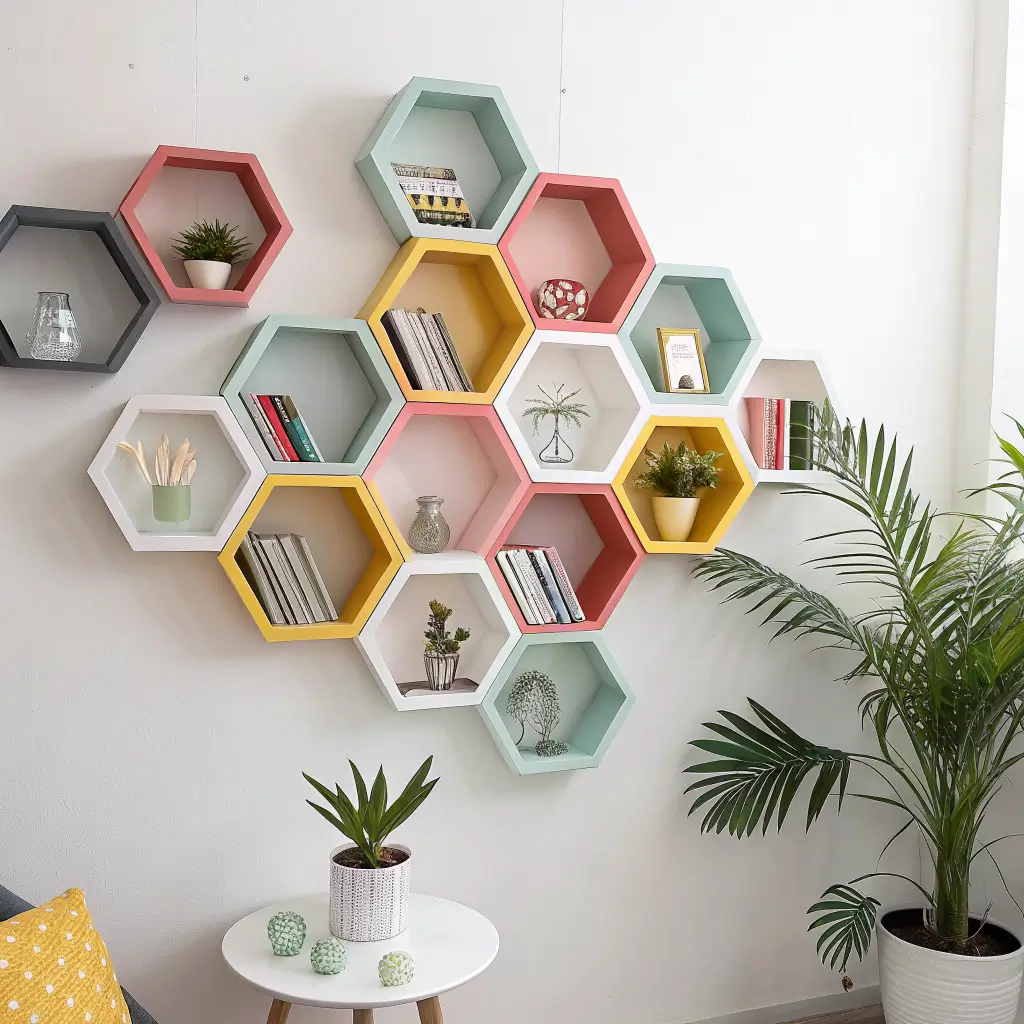 Who said shelves have to be boring brown or white? Colorful hexagon displays are where personality meets function, and trust me, they’re addictive. Once you paint one hexagon teal, you’ll want to paint another coral, then maybe a sunny yellow…