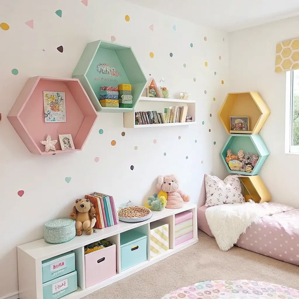 Kids Room Hexagon Shelf Ideas