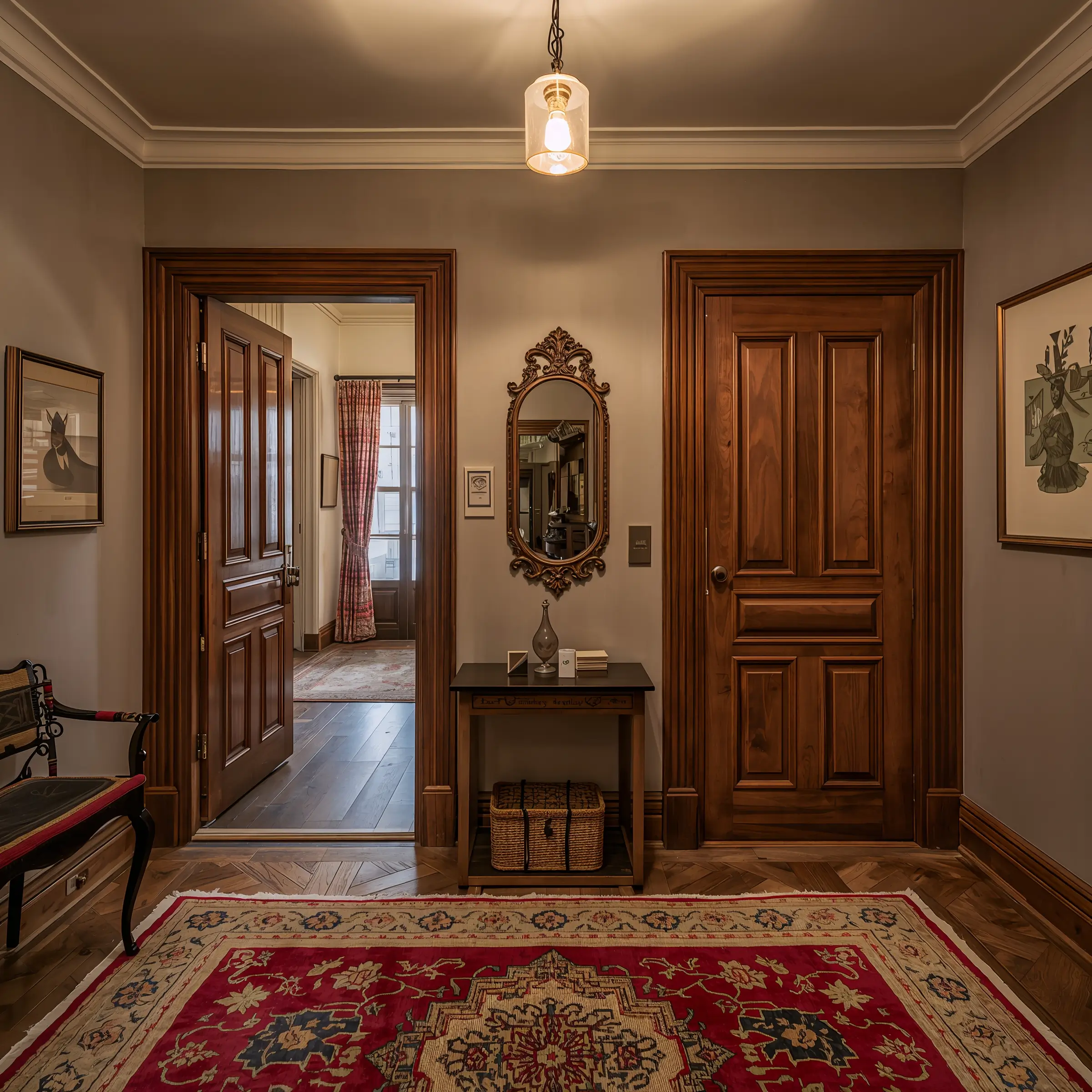 The biggest mistake with vintage style? Making your entrance look like grandma’s attic exploded. Choose your era and stick mostly to it, with maybe one or two pieces from other periods.