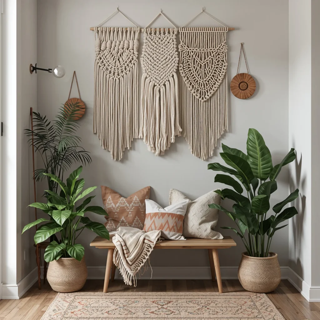 Texture is everything when it comes to making a space feel finished. Woven wall hangings and macramé add that bohemian warmth that makes people want to stay awhile.