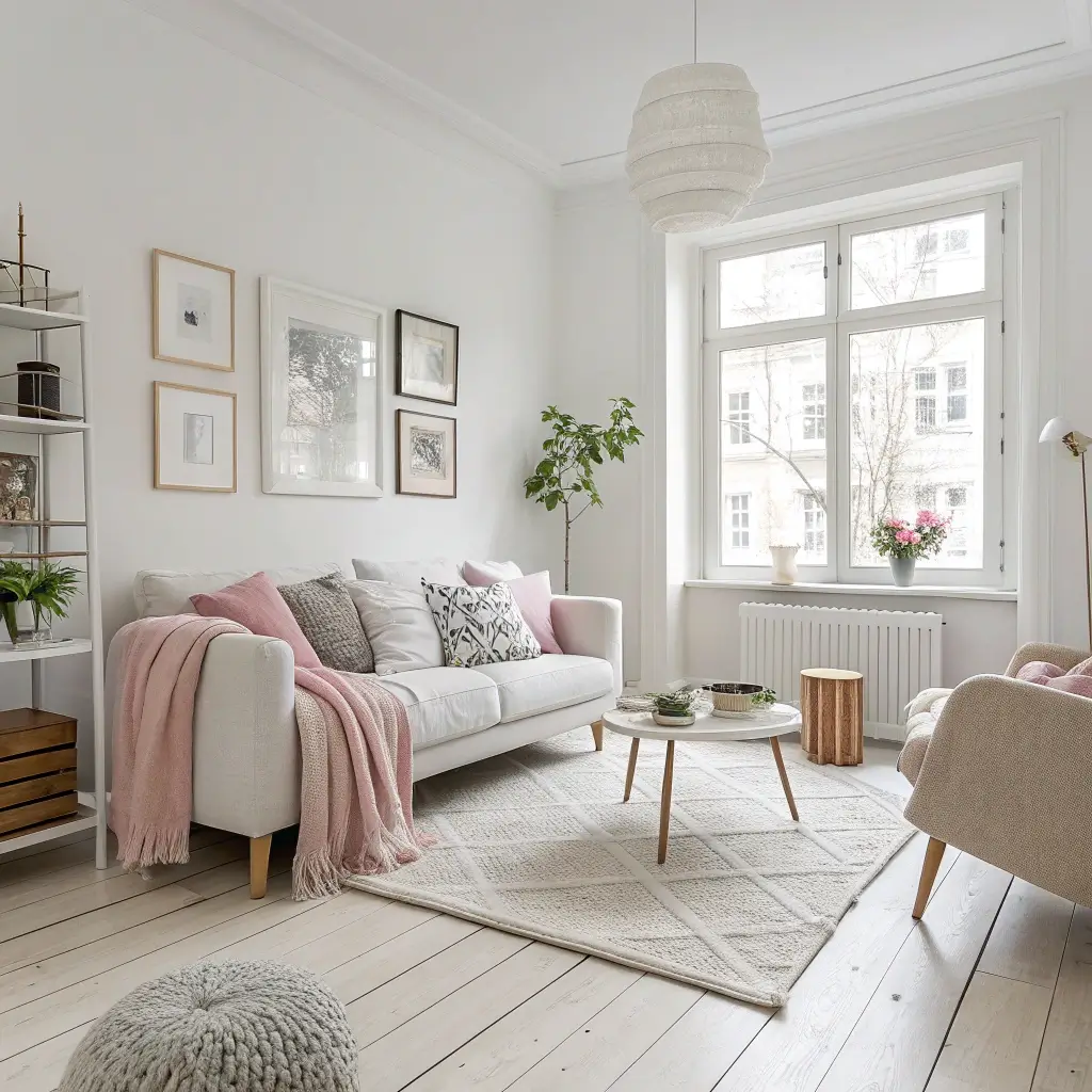 Scandinavian doesn’t mean all-white-everything (though it can). Add warmth through natural wood, soft grays, and occasional black accents. My favorite combo? White walls, light wood floors, gray sofa, black metal accents.