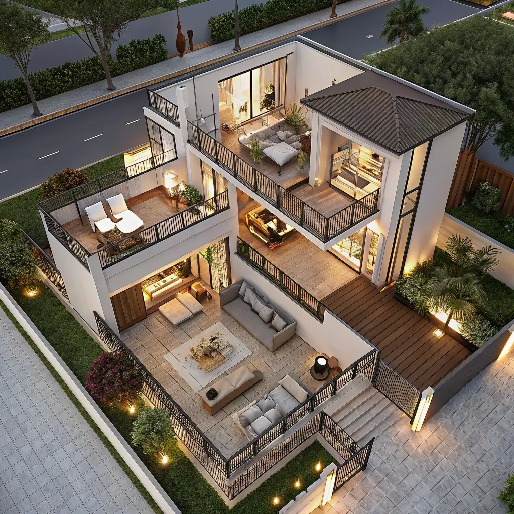 Going vertical isn’t just for city dwellers anymore. Multi-story contemporary designs maximize lot space while creating distinct living zones that actually make sense. Think of it as apartment-style privacy but in your own house.