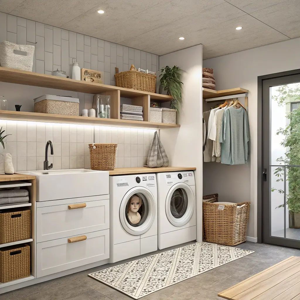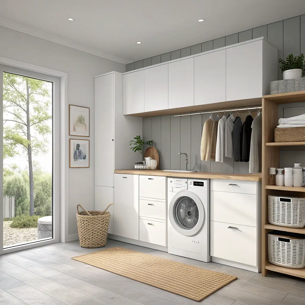 Sometimes less really is more, especially when you’re trying to make a small space feel bigger. Minimalist design in the laundry room isn’t just about aesthetics – it’s about creating a calm environment where you won’t feel overwhelmed by clutter.