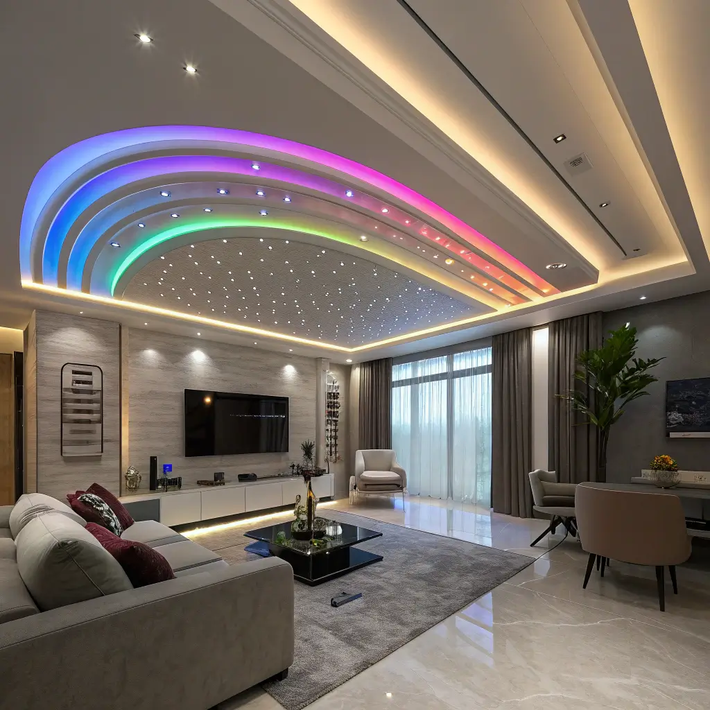 Let me start with my absolute favorite – the modern false ceiling with LED strips. I installed one in my living room last year, and honestly, I can’t imagine going back to regular lighting. These bad boys create this incredible ambient glow that makes everything look expensive, even my IKEA furniture.