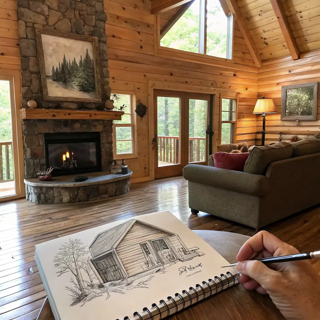 Rustic Cabin Interior Sketches