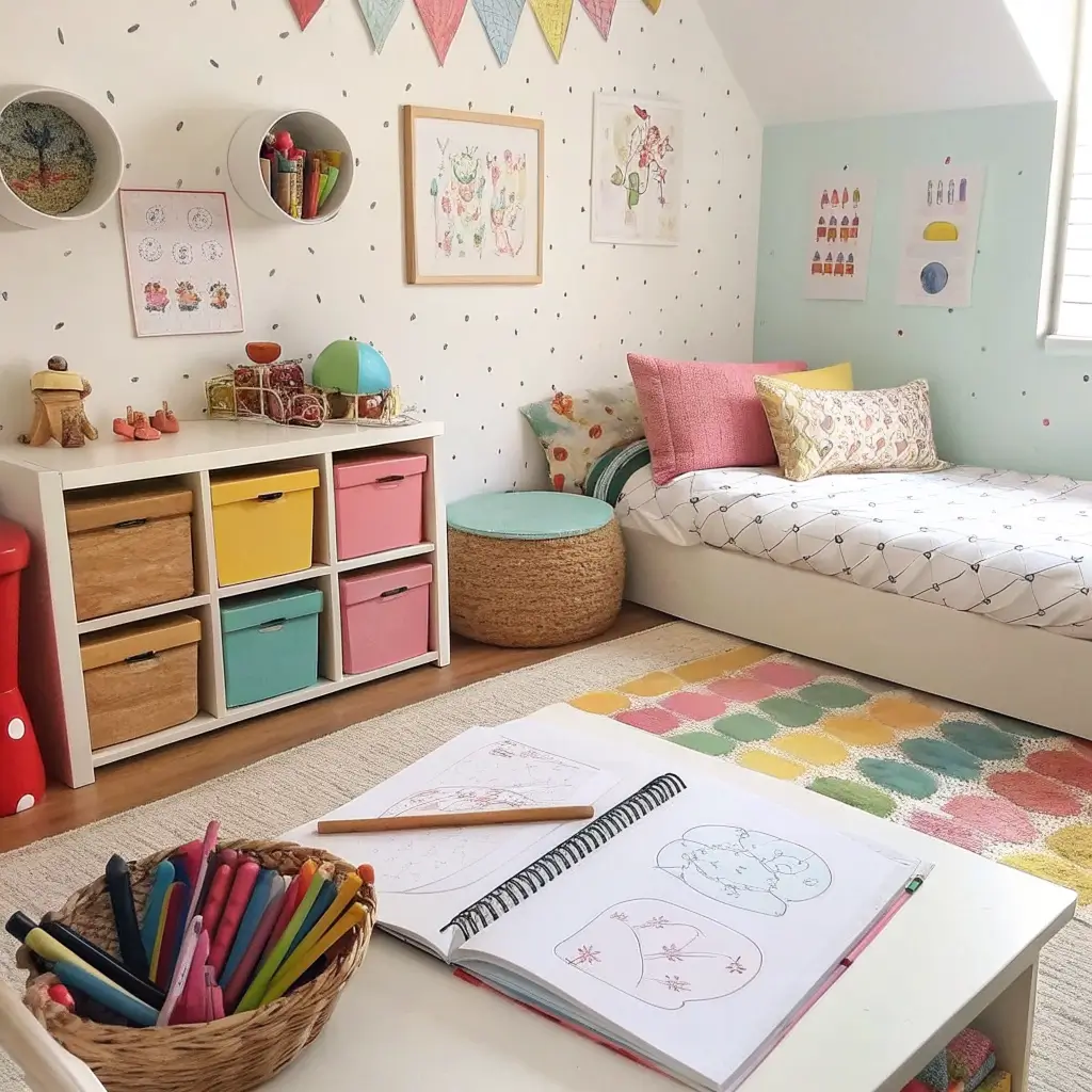 - Creative storage solutions (toy chests, wall pockets)