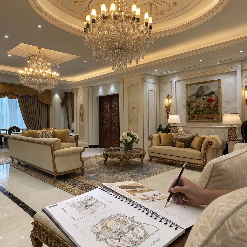 Start with scale – everything in luxury sketches should feel grand but proportional. High ceilings, oversized furniture, statement art pieces. Your line work should be precise and confident here. No sketchy (pun intended) details allowed. Every element should look intentional and expensive.