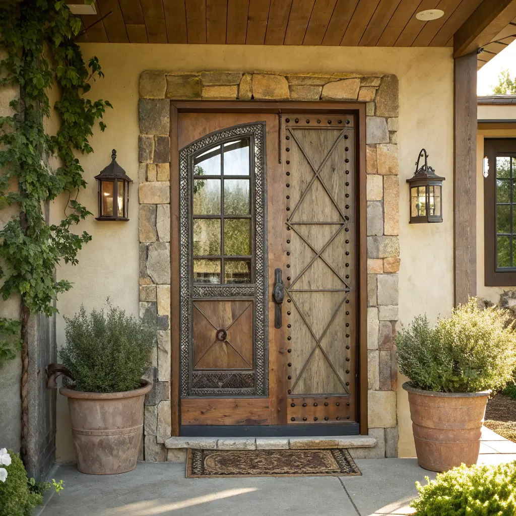 Why choose between iron and wood when you can have both? Iron doors with wooden accents give you the security of metal with the warmth of timber. It’s like having your cake and eating it too, except the cake is a door, and you’re not eating it (please don’t eat your door).