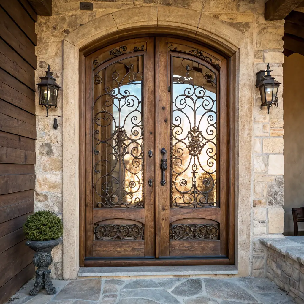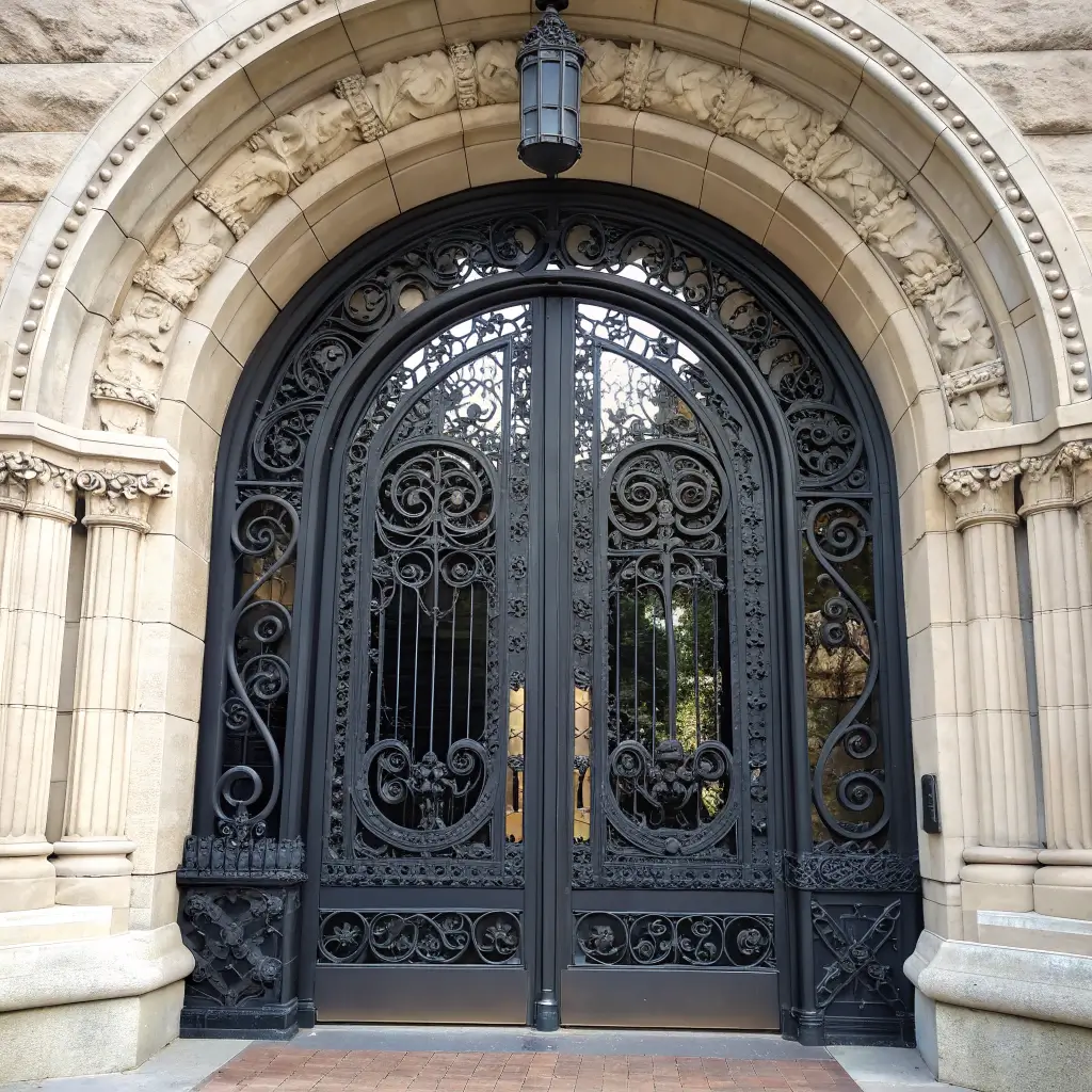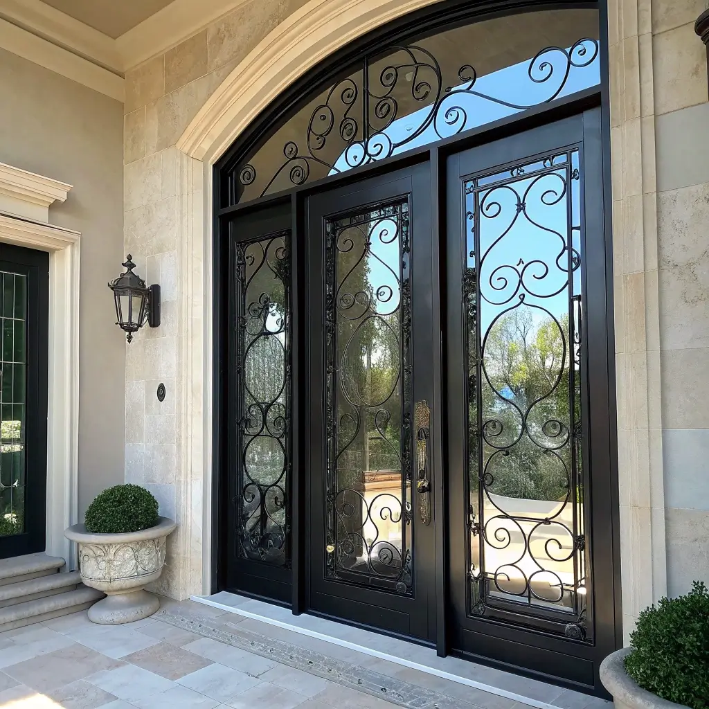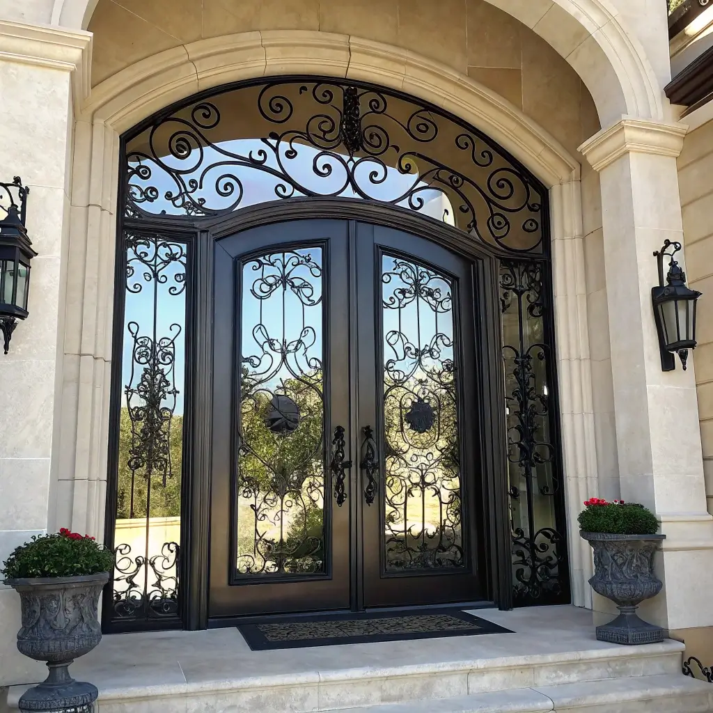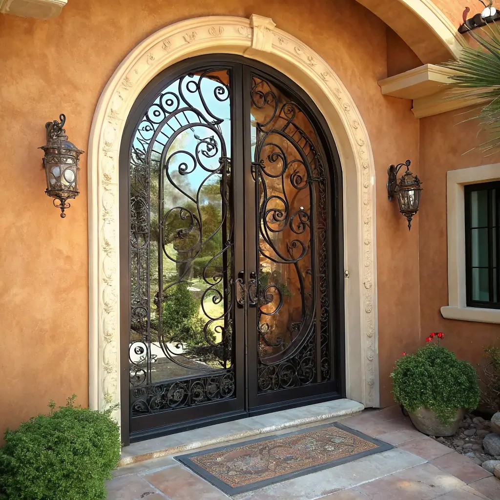 What sets Mediterranean designs apart? The curves, my friend, the curves. These doors embrace organic shapes inspired by vines, waves, and classical architecture. You’ll often see bronze or copper accents mixed with the iron, creating a rich, layered look that improves with age.