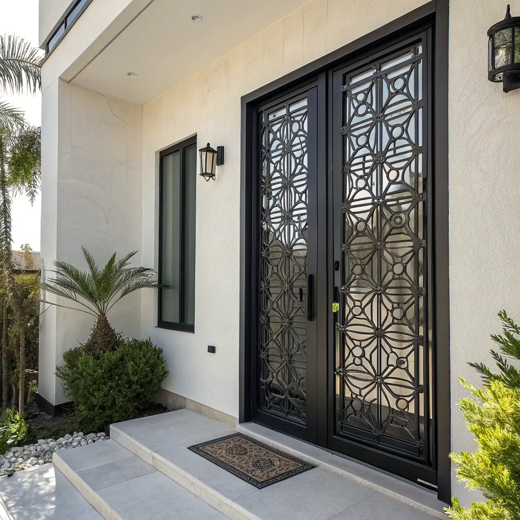 Go big or go home, right? Double iron doors with decorative grills make a statement that says, “Yeah, I’ve got style, and I’m not afraid to show it.” These aren’t just doors; they’re the grand entrance your home deserves.
