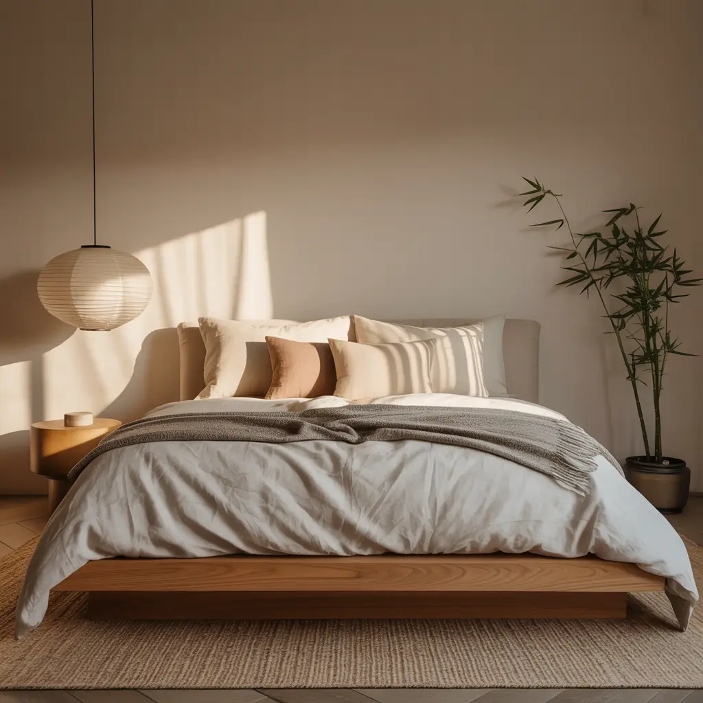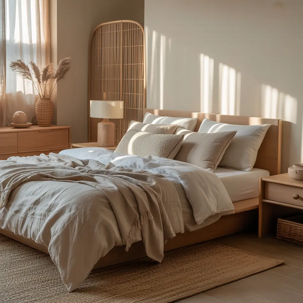 Let’s talk textures, because IMO, this is where most people mess up their Japandi bedrooms. You need that tactile interest without visual chaos. Linen and bamboo are your best friends here.