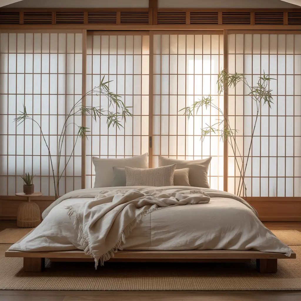 9. Minimalist Tatami-Inspired Bedroom