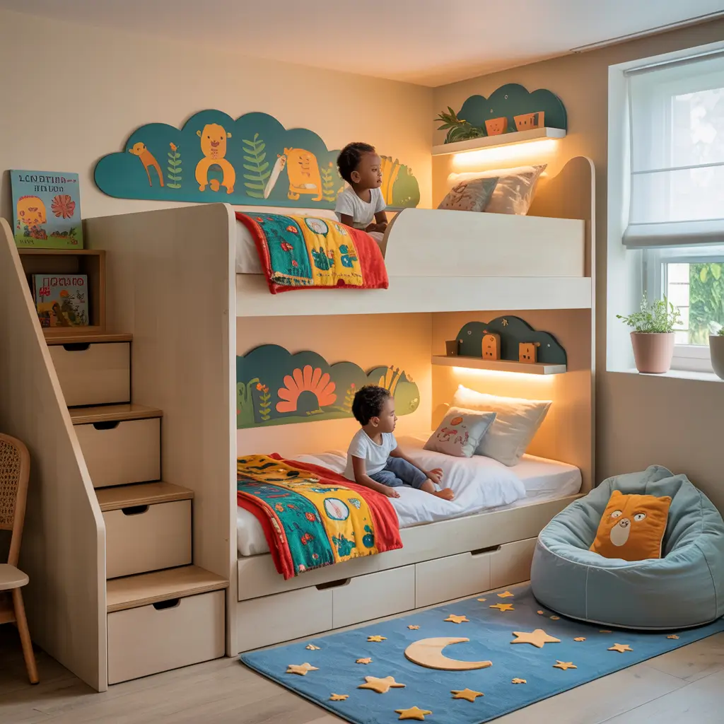 When my kids shared a 10×10 room, I thought we were doomed to eternal chaos. Enter the L-shaped bunk bed with a desk underneath – game changer! Suddenly, we had sleeping space, study area, and room to actually walk around. Who knew furniture could perform such magic?