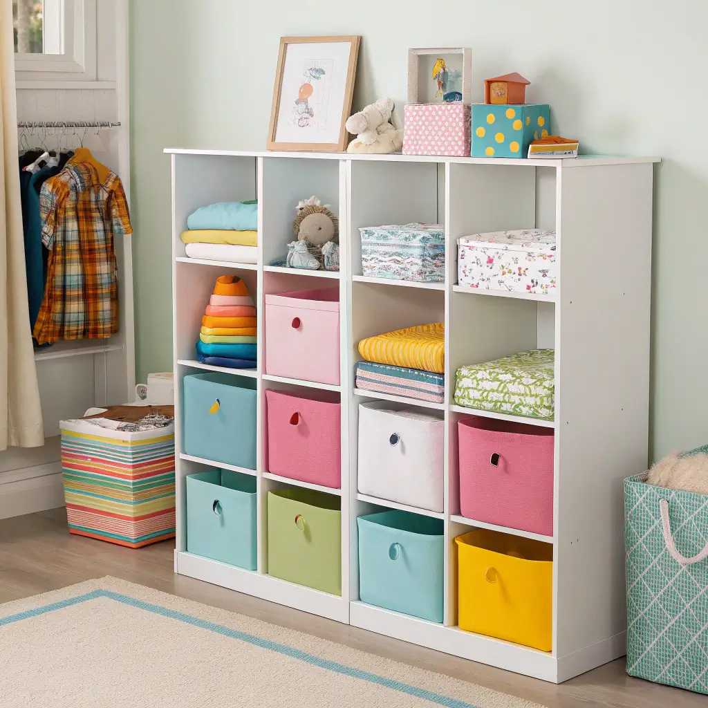 Cube organizers are like the Swiss Army knives of closet organization. They’re versatile, affordable, and kids actually understand how to use them. Each cube becomes its own little zone – one for undies, one for PJs, one for that collection of random treasures your kid insists on keeping.