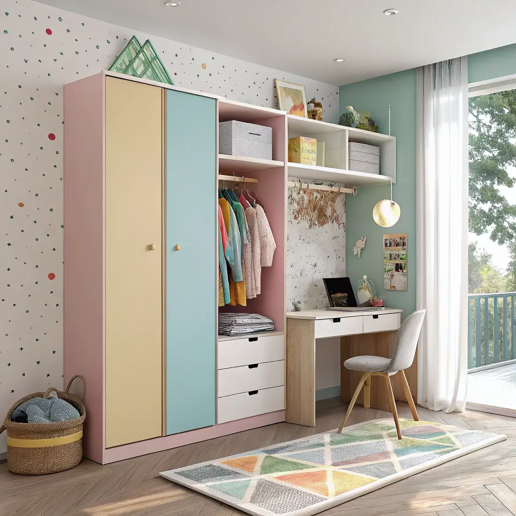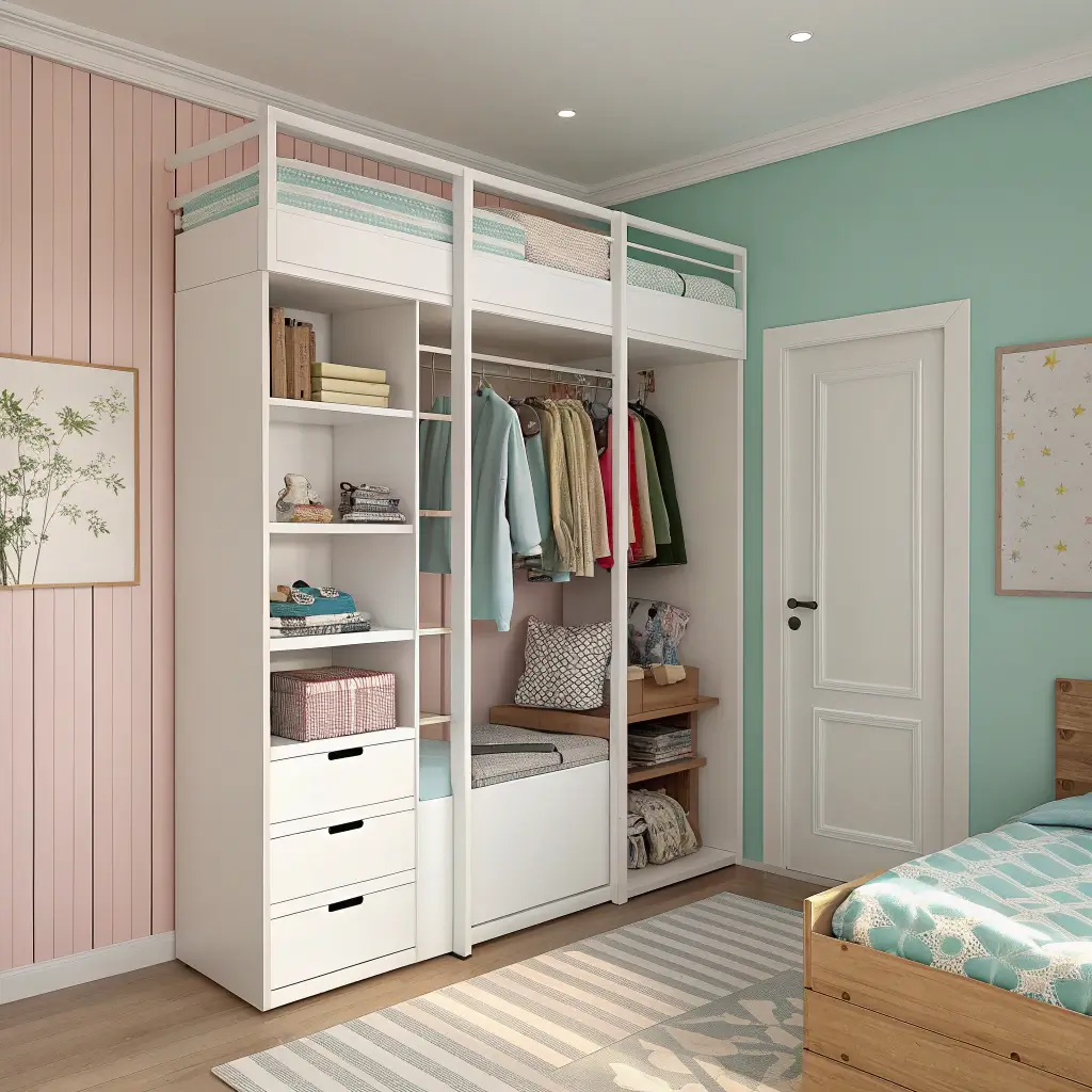 Think wardrobes with built-in desks, reading nooks on top, or play spaces underneath loft-style designs. My friend’s daughter has a wardrobe with a fold-down art table on one side – genius use of space!