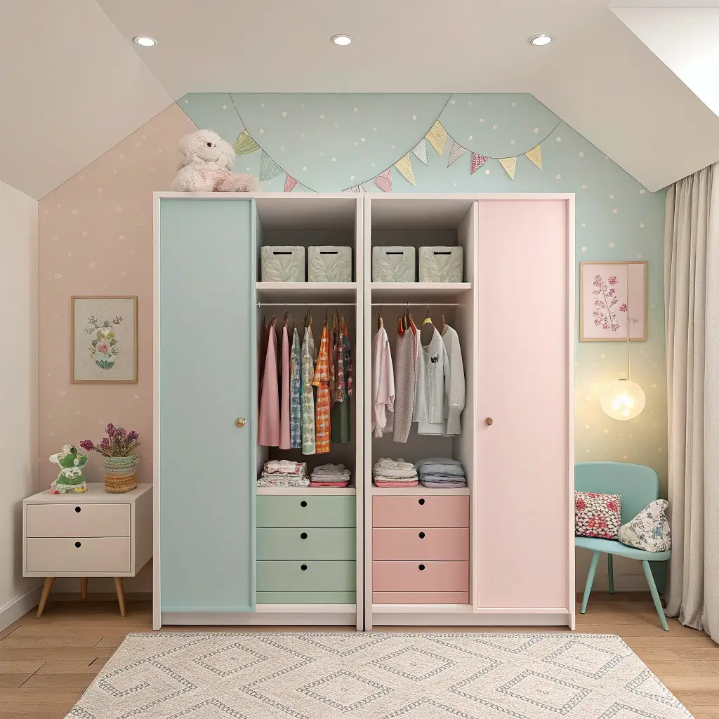 Let’s talk color – because beige wardrobes in kids’ rooms? Seriously? Kids need color like plants need sunlight. But here’s the trick: you want colorful without creating visual chaos.