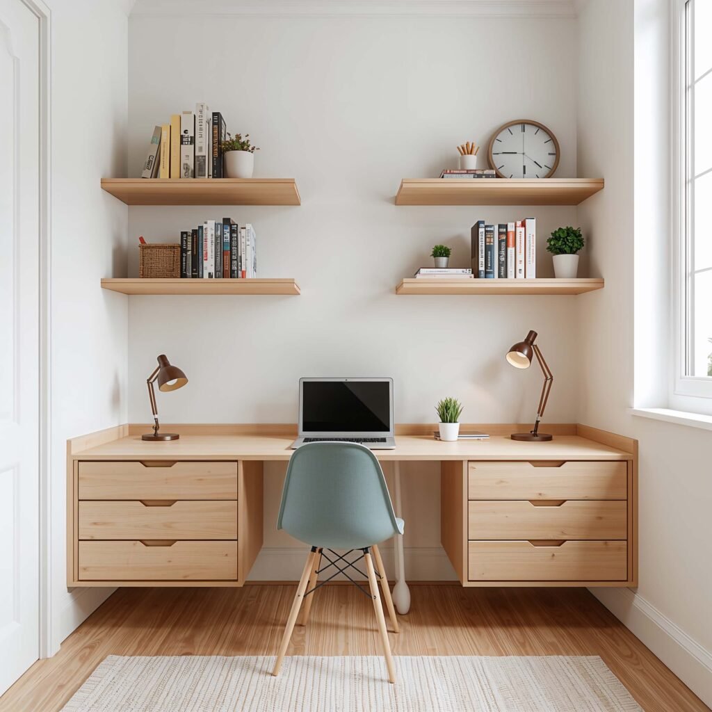 Floating Shelves with Desk Integration
