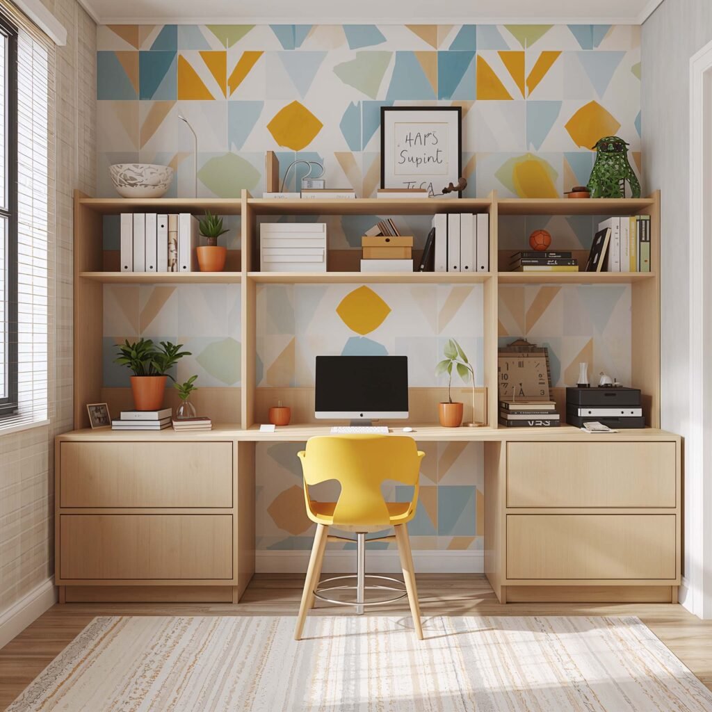 The trick is balance. One geometric accent wall paired with solid colors elsewhere creates visual interest without sensory overload. Think of it as controlled chaos that actually helps creativity flow.