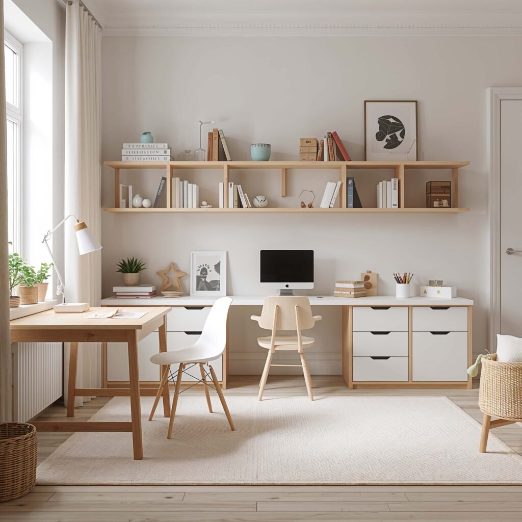 Scandinavian design isn’t just for adults obsessed with IKEA. This clean, functional style works brilliantly for kids’ study spaces. The emphasis on natural materials and simple lines creates a calming environment perfect for concentration.