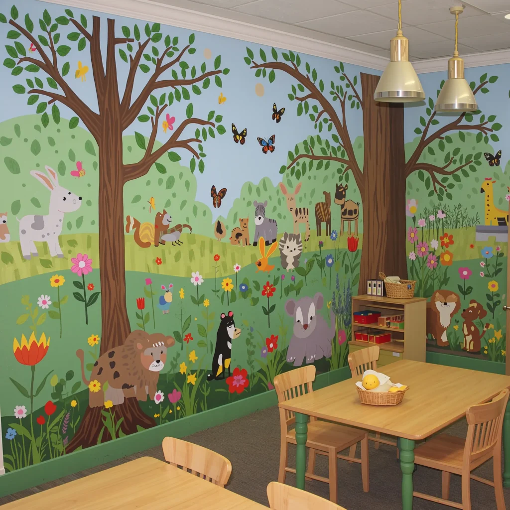 The genius move? Make parts of your mural functional. Those trees? Perfect for hanging student work. The grass area? Ideal for a growth chart where kids can measure themselves against woodland creatures. I once created pockets in the tree trunk where we’d hide daily surprises or learning challenges.