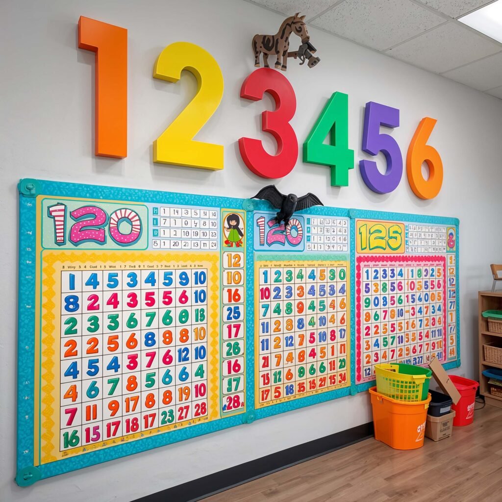 Numbers don’t have to be static, boring displays. My interactive number wall gets kids up and moving while reinforcing mathematical concepts. Picture a wall where every number from 1 to 20 (or higher, depending on your curriculum) becomes a hands-on activity center.