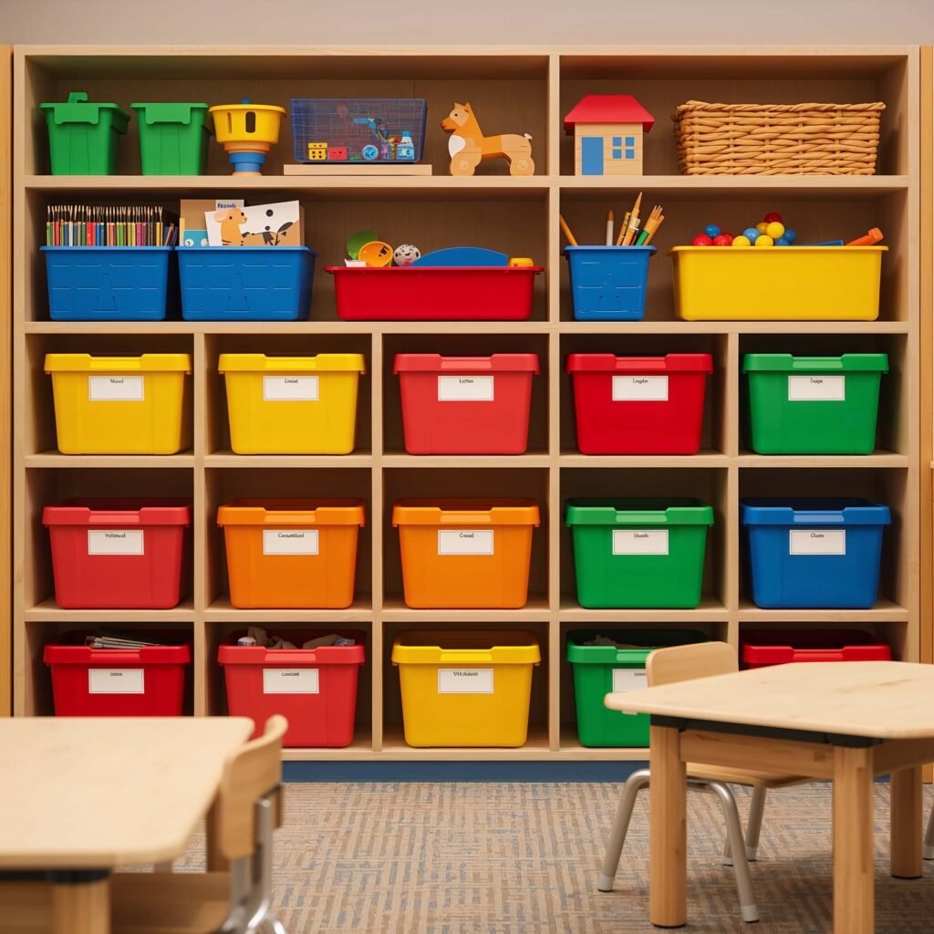 Assign each learning area or subject a specific color. Math is red, literacy is blue, science is green, art is purple, and so on. Every bin, folder, and storage container related to that subject gets labeled in that color. But here’s the kicker – make the labels picture-based, not just words.