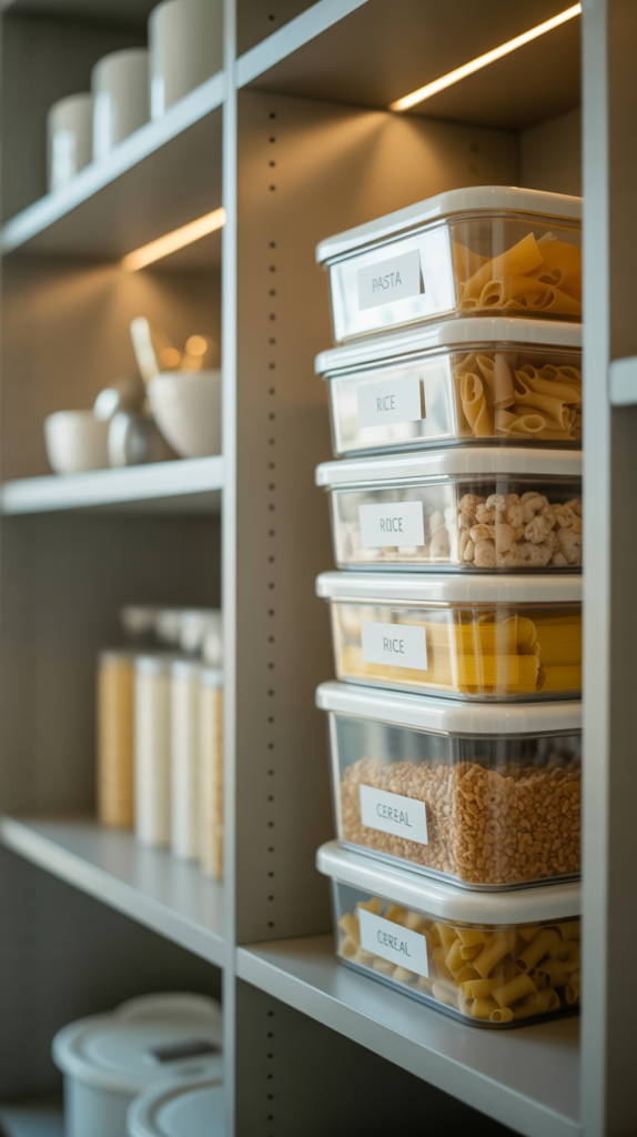 This idea takes the clear container concept and applies it to your entire pantry. It’s about creating a uniform, modular system where everything has its place. When you use stackable containers, you’re essentially building your own custom shelving unit with your food.