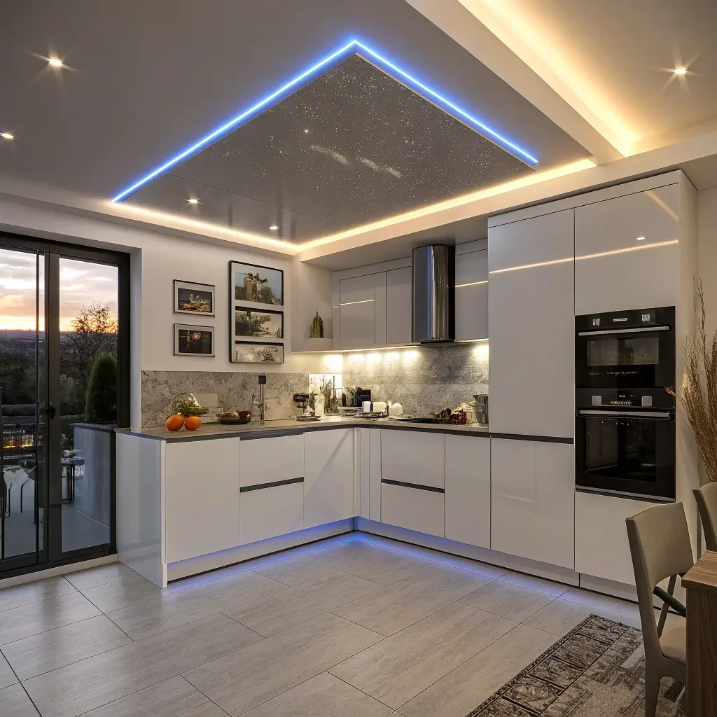 While I usually advocate for matte finishes, glossy ceilings create dramatic reflections that can transform small kitchens. They’re like mirrors for your ceiling—doubling visual space and bouncing light everywhere.