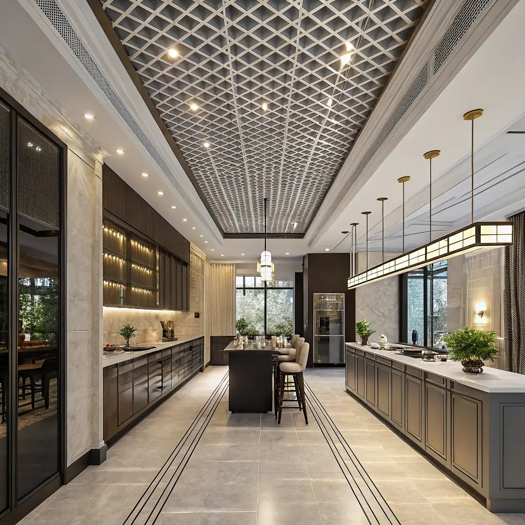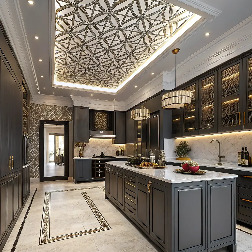 Remember: geometric ceilings work best in simpler kitchens. If you’ve got busy backsplashes and patterned floors, maybe skip this one. Unless chaos is your aesthetic—then by all means, go wild!