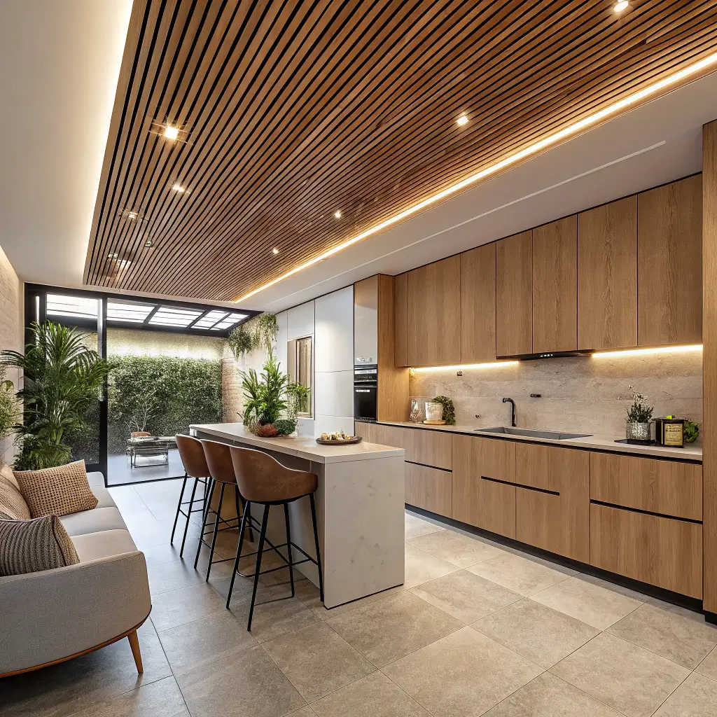 Wood slat ceilings bring Scandinavian vibes and natural warmth that make kitchens feel like cozy cafes. They’re having a moment right now, and I’m totally here for it.