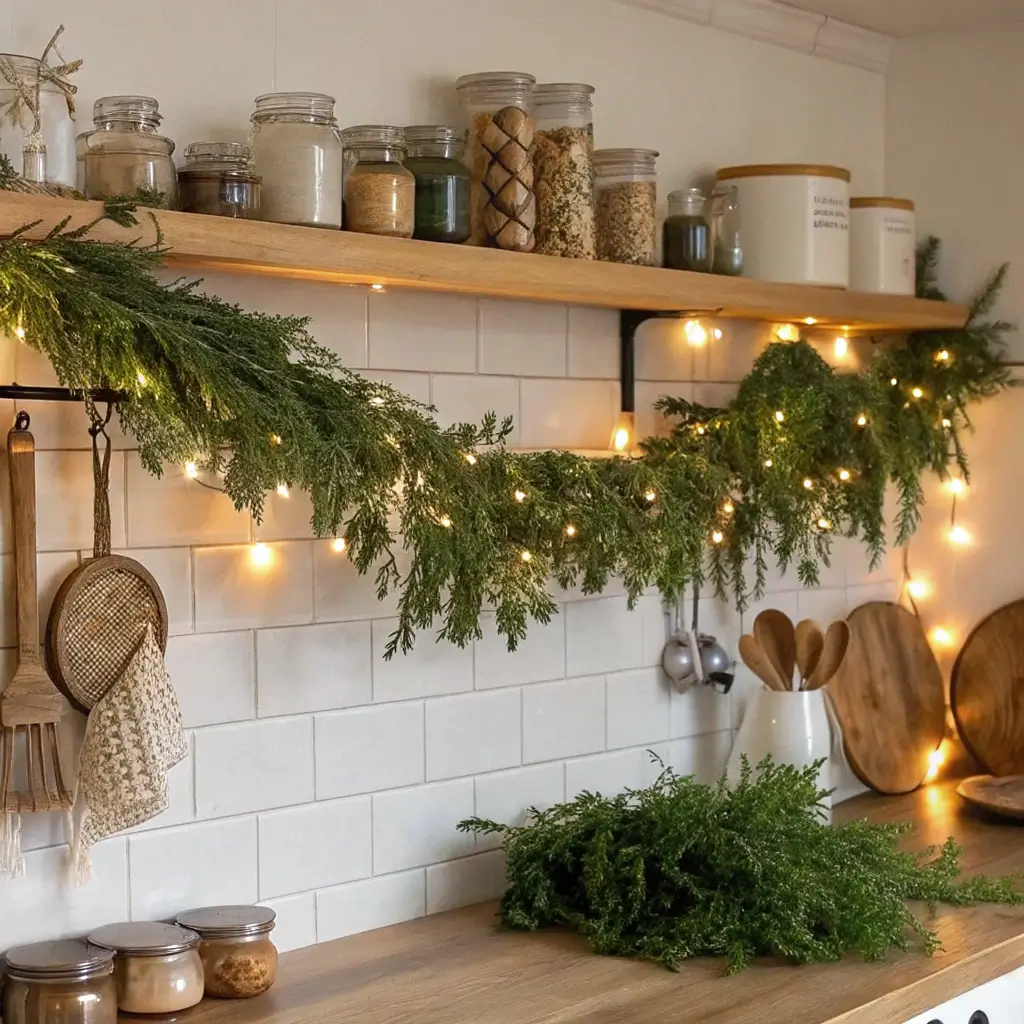 Festive Herb Garland on Shelves
