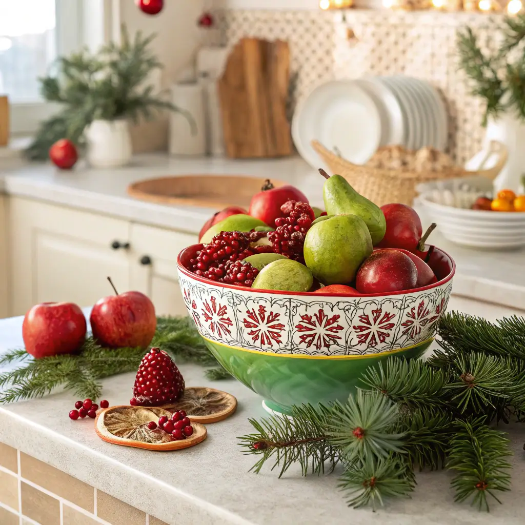 Who needs fake decorations when Mother Nature provides perfectly festive produce? A thoughtfully arranged fruit bowl using red and green fruits serves as both decoration and healthy snack station. It’s practical decoration at its finest, and it forces you to eat fruit instead of the Christmas cookies hiding in the pantry.