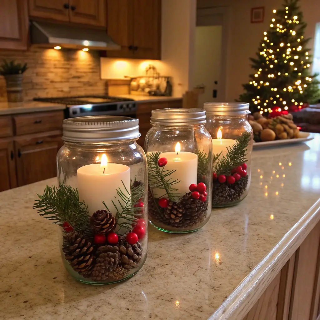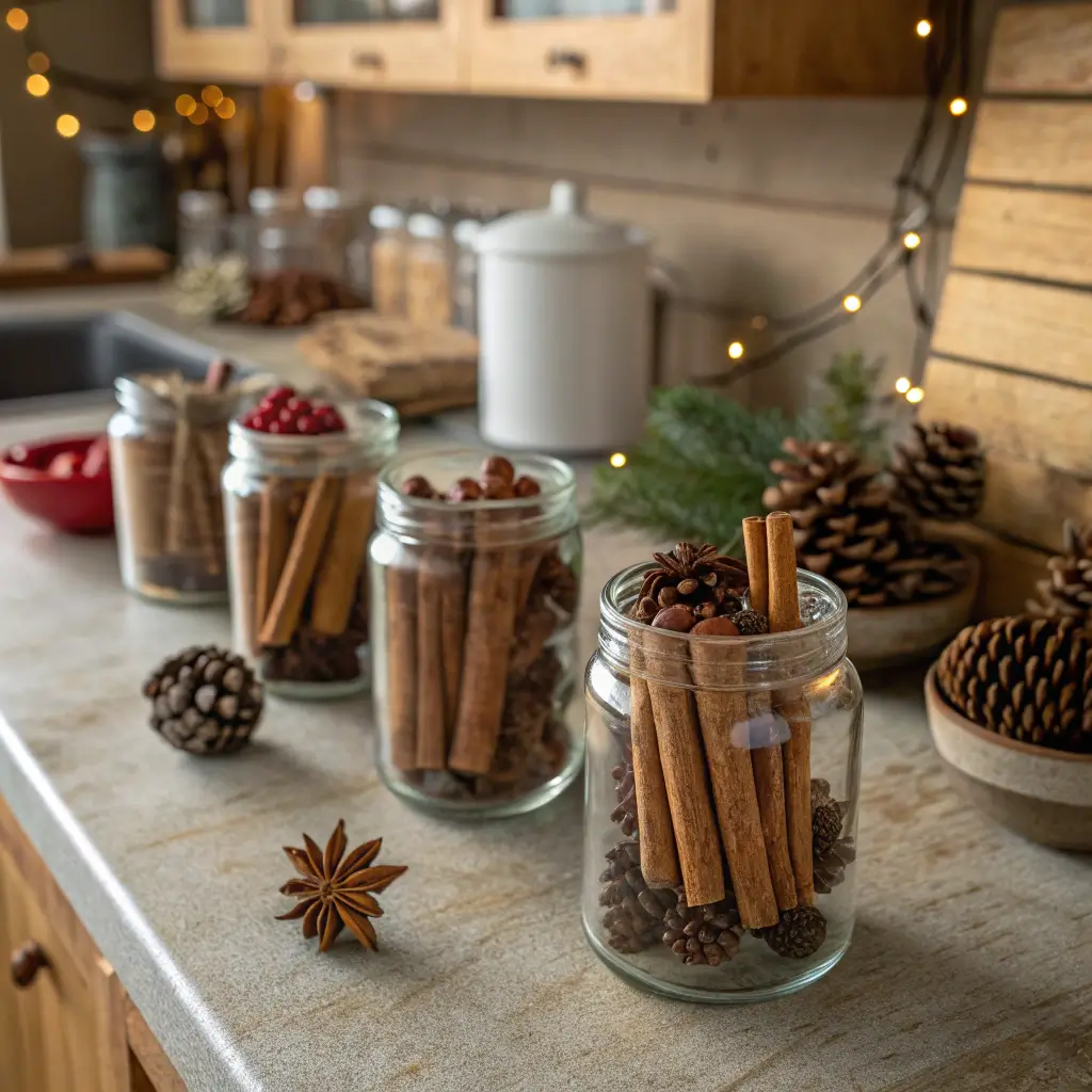 Want your kitchen to smell like Christmas heaven? Cinnamon stick and pinecone jars deliver both style and scent without overwhelming your guests with artificial fragrances.