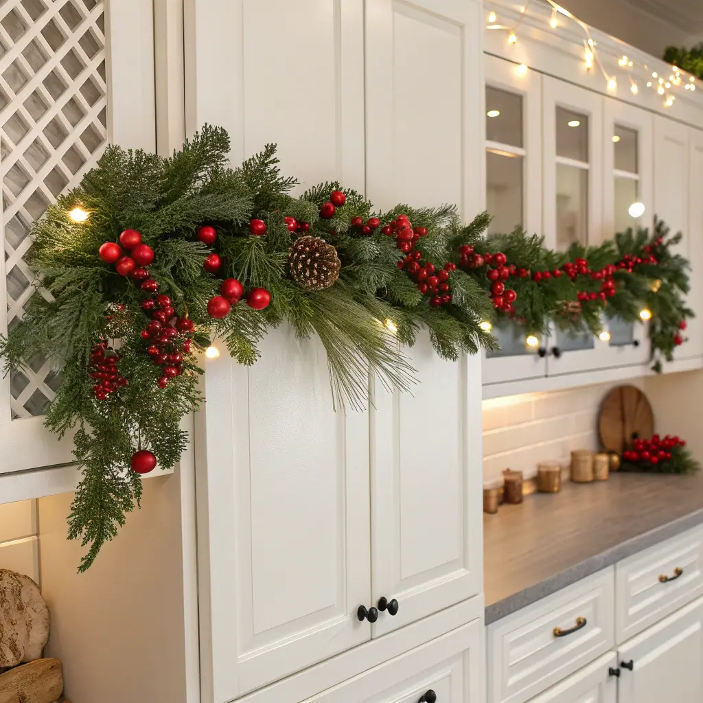 Your cabinets are begging for some holiday love. DIY garland transforms boring cabinet fronts into festive focal points faster than you can say “jingle bells.”