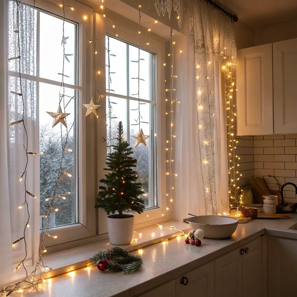 Fairy lights around kitchen windows create magical ambiance without the fire hazard of real candles. Plus, they make washing dishes at night actually enjoyable (almost).