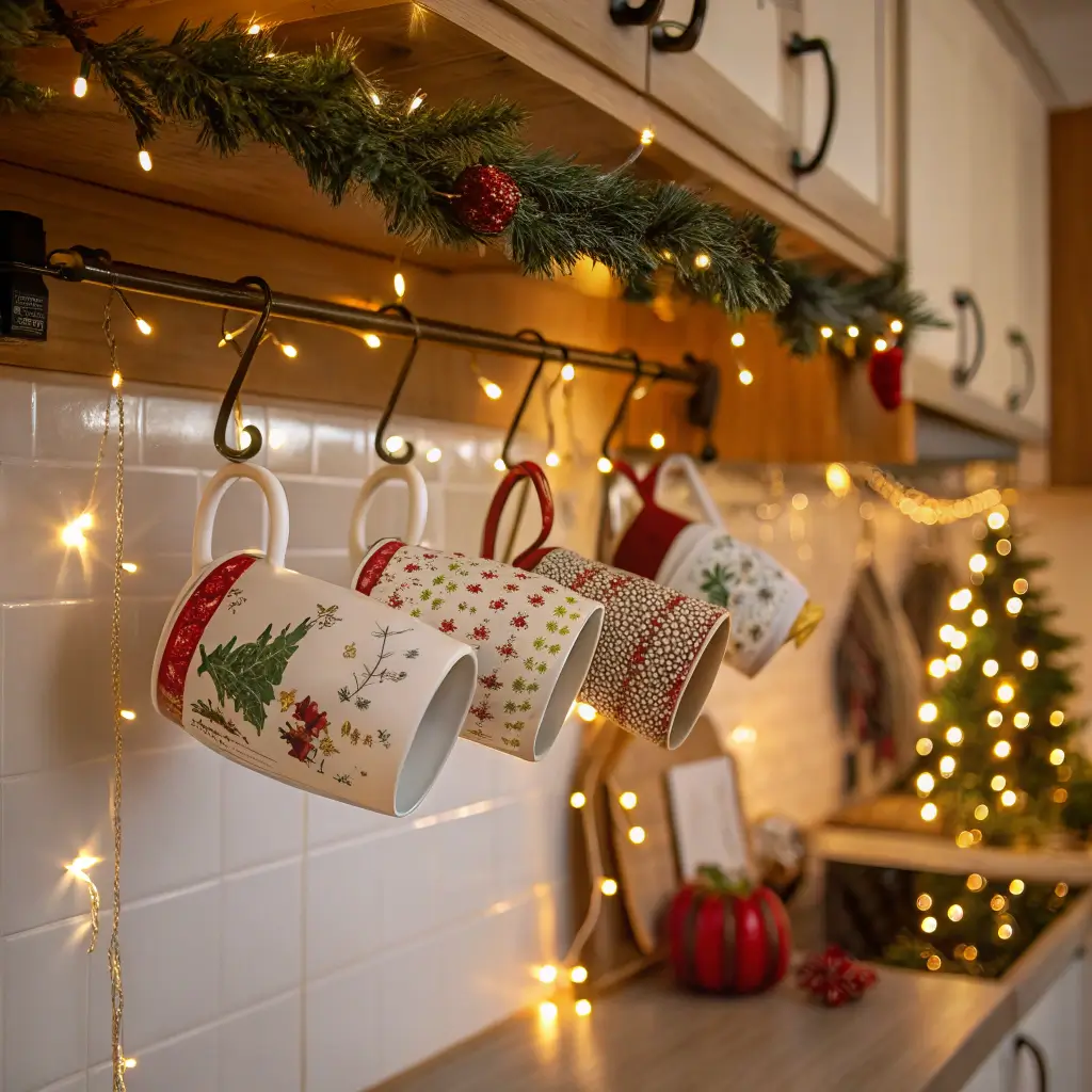 That mug collection needs to earn its keep during the holidays. Creating a mug display serves both form and function while freeing up cabinet space.