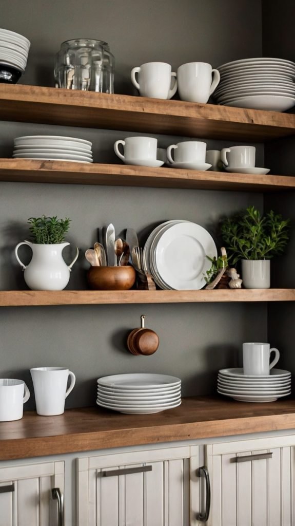 - Showcase Your Style:ย Use it to display your beautiful heirloom dishes, a collection of colorful vintage glassware, or elegant glass canisters filled with pasta and beans. Itโs your chance to add a personal touch.