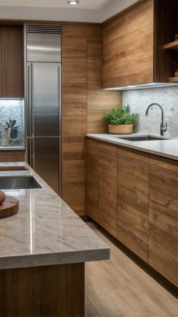 - A High-End Look:ย This is a custom, built-in feature that screams “designer kitchen.” Itโs a luxurious and incredibly functional upgrade.