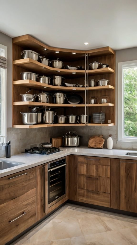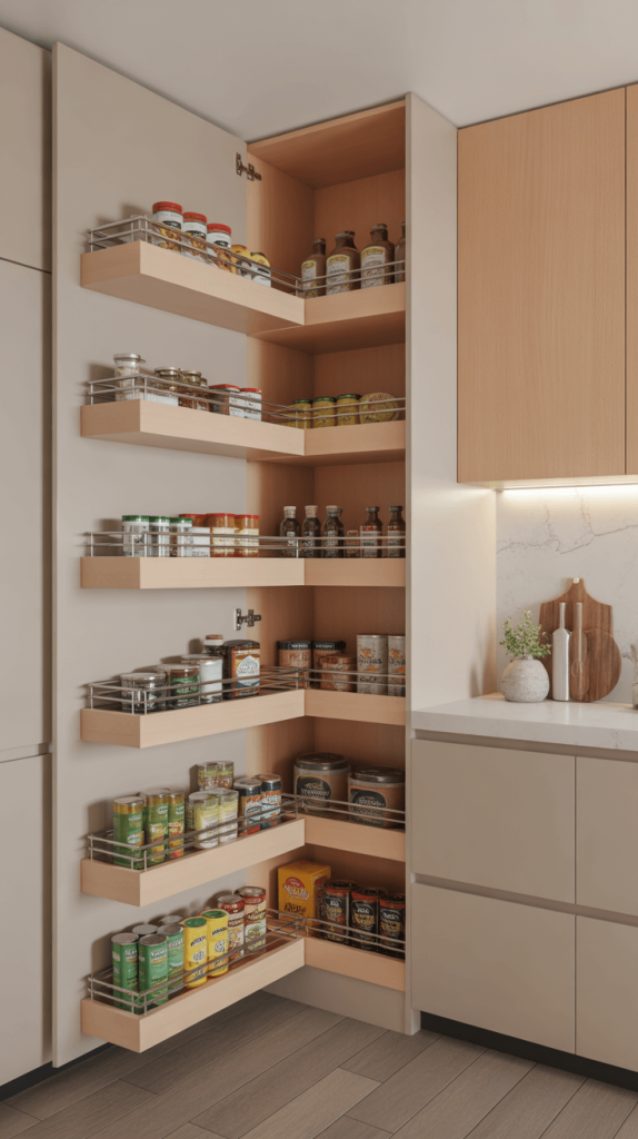 1. Pull-Out Pantry Shelves for Corner Cabinets