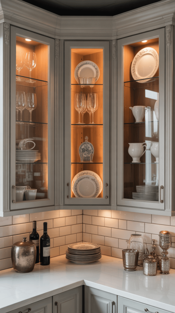 How it Works: You replace the solid door(s) of your corner cabinet with glass doors. This could be clear glass, frosted glass, or even reeded glass for a more modern look. Then, you intentionally style the interior.