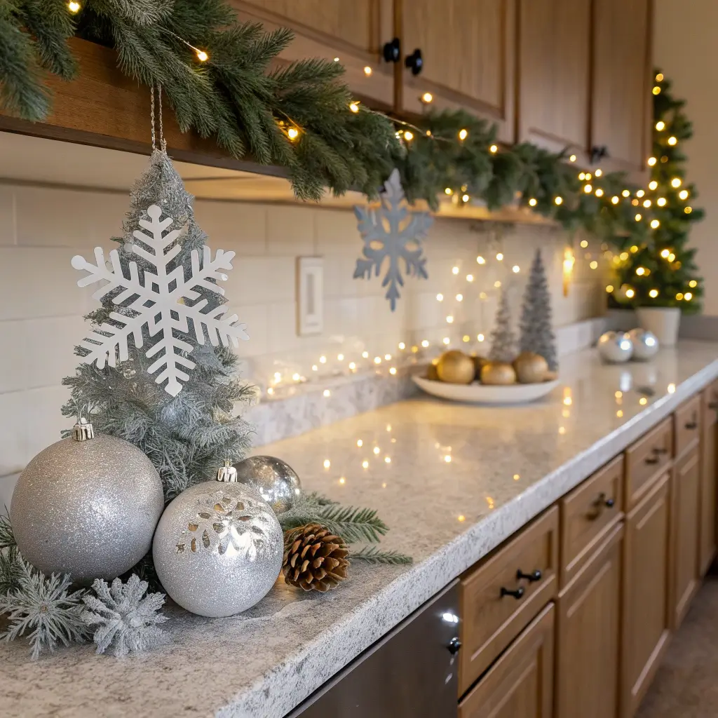 For those who prefer their Christmas decor with a contemporary edge, the modern metallic approach delivers. Think rose gold, copper, and brushed silver instead of traditional red and green. This style works incredibly well in modern kitchens with stainless steel appliances.