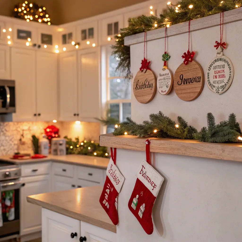 Create a photo garland using Christmas cards from previous years. Display kids’ handmade ornaments prominently. Set up a hot chocolate mug collection featuring everyone’s favorite cup. These personal touches make your kitchen feel like the heart of your home during the holidays.