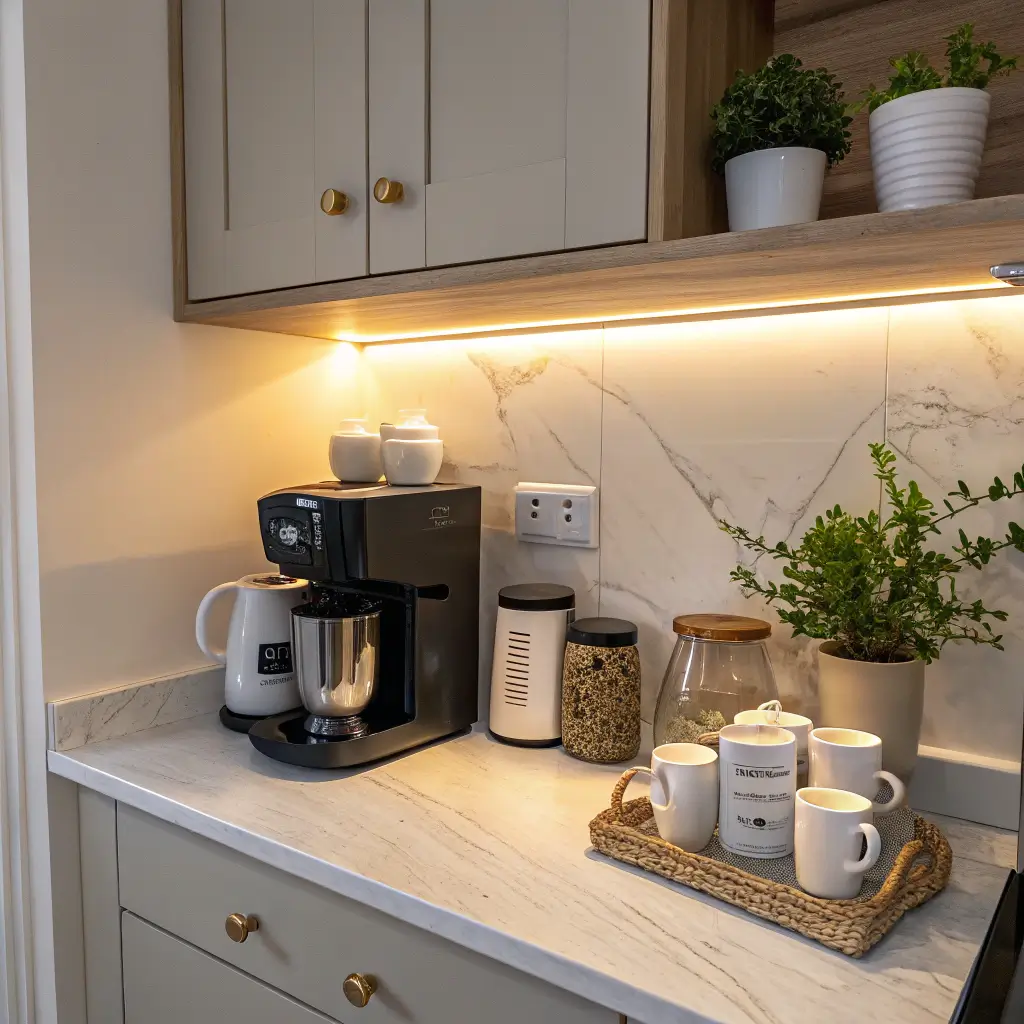 Creating a dedicated coffee corner changed my mornings completely. No more hunting for filters while half-asleep or knocking over the sugar jar reaching for mugs. Everything sits in one organized, beautiful corner that makes me feel like a barista in my own kitchen.